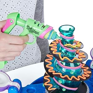 Creativity takes center stage with a unique spin on DohVinci crafting! Now DohVinci designers have another awesome way to decorate 3D or flat projects on the motorized spinning turntable. With a Styler, 4 Deco Pop tubes, and 5 projects, this complete kit provides so many awesome ways to get creative. And with 5 different light modes, every masterpiece can be its own dazzling display!
