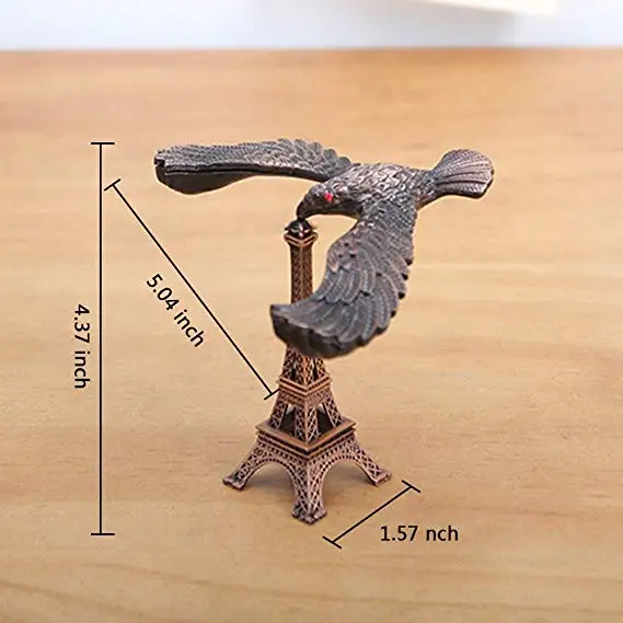 Features- Color: Bronze- Size: 4.92x3.74x4.33 inches / 12.5x9.5x11 cm- Material: Alloy.- This eagle balances perfectly on the tip of the eiffel tower.- Spin it, stop it, flip its wings - the eagle won't fall off.- Balance bird is a unique gift for your friends and family on birthdays and festivals to express your feelings for your family.- The retro and creative home decor perfectly decorates your room,and the lifelike effect makes you feel like a real bird on the tower.Package Including1 x Balance Bird Alloy Gravity Balance Toy Self Balancing Eagle Eiffel Tower Model DIY Tabletop Decoration for Home Office Gift.